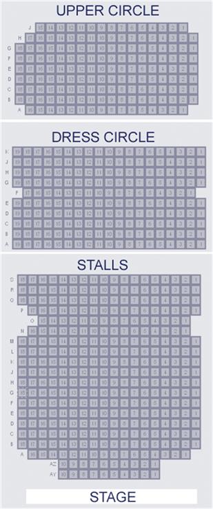 Access description: There is a step of approx. 5cm then 2 sets of double doors opening into the foyer. Box Office counter on right. Staircases are all highlighted and have handrails on both sides. Stalls are 6 steps down from the foyer. 27 steps up to the Dress Circle (3 steps between rows). Upper Circle 54 steps up from foyer, though very narrow. Auditorium open 30 mins before performance.