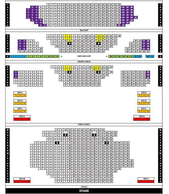 Toilets: Men’s and women’s off the Dress Circle Bar. Women’s 4 steps up from Stalls bar, men’s 11 steps up from Stalls bar. Women’s and men’s off rear Stalls and at Upper Circle and Balcony levels.