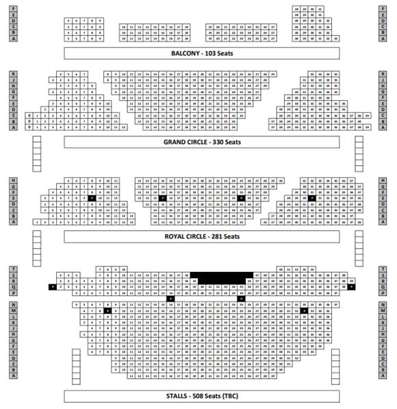 Access description: Level access into the foyer through the centre doors and through 2 sets of swing doors. Box Office counter on the right-hand side. Staircases have handrails on both sides and some steps are highlighted. Stalls are 18 steps down from the foyer, Royal Circle up 32, Grand Circle up 62 and Balcony up 89. 2 steep steps between rows in the Circles. Customers with mobility problems are advised to book stalls seats.