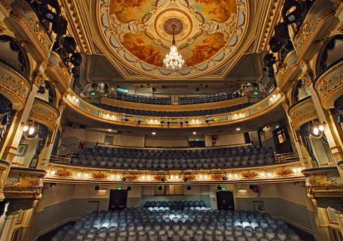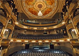 Access description: One 20cm step up to foyer through heavy double doors opening inwards. Box Office counter on the right. 18 steps down to Stalls. Staircases have handrails on both sides and some steps are highlighted. 12 steps up to the Royal Circle, 21 to the Upper Circle and approx. 43 to the Balcony with 2 steps between rows. Auditorium is carpeted – all other areas are tiled.