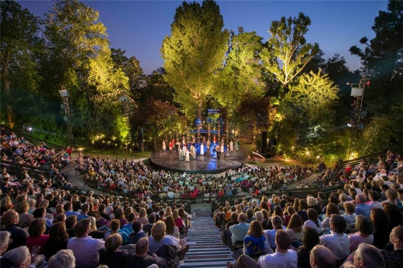 Access description: The main entrance to the theatre is through Queen’s Mary’s gardens and is completely level. There is also a more direct entrance through the Theatre Exit Gate which patrons requiring assistance with access are welcome to use. The main entrance is immediately adjacent to the box office. Through the gate you follow a gentle slope with a handrail. The auditorium entrances are opposite and you enter directly onto the theatre’s accessible row with discounted seats for qualifying patrons. The Theatre Exit Gate is immediately off the Inner Circle Road. There is a ramp up to the gate where a member of staff is on hand to assist. Once in the venue’s grounds there is a gently sloped path upwards with the auditorium at the top on your left hand side. Again, you enter the auditorium directly onto the theatre’s access row. Should you require help, the box office staff are on hand to collect tickets on your behalf. The auditorium consists of two tiers. The lower tear has shallow steps which are easier to negotiate than the Upper Tier. Please be aware that the Upper Tier has steeper steps and doesn’t have any handrail support. All patrons need to exit through the Theatre Exit Gate as The Royal Parks lock Queen Mary’s Gardens during the evening performance.